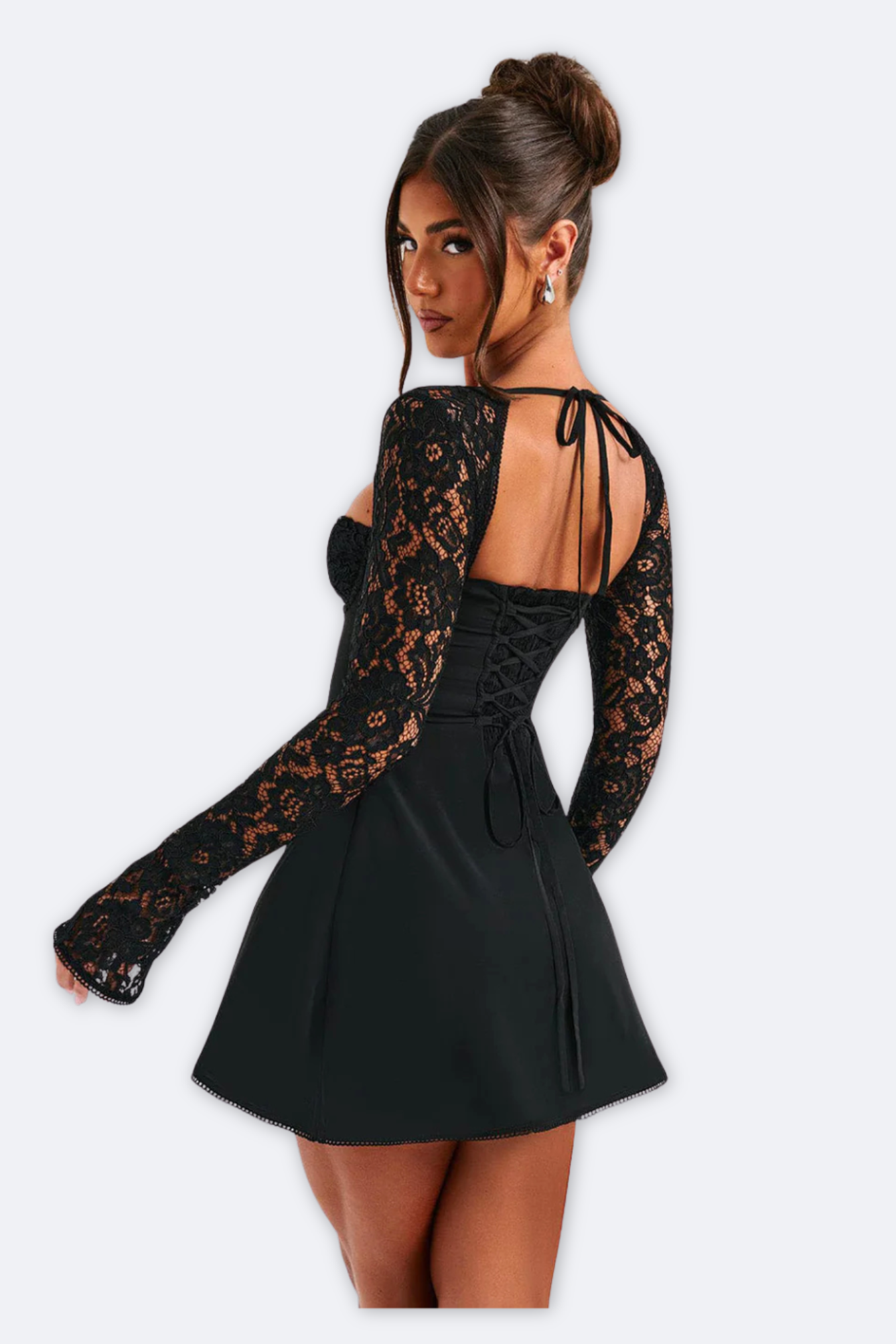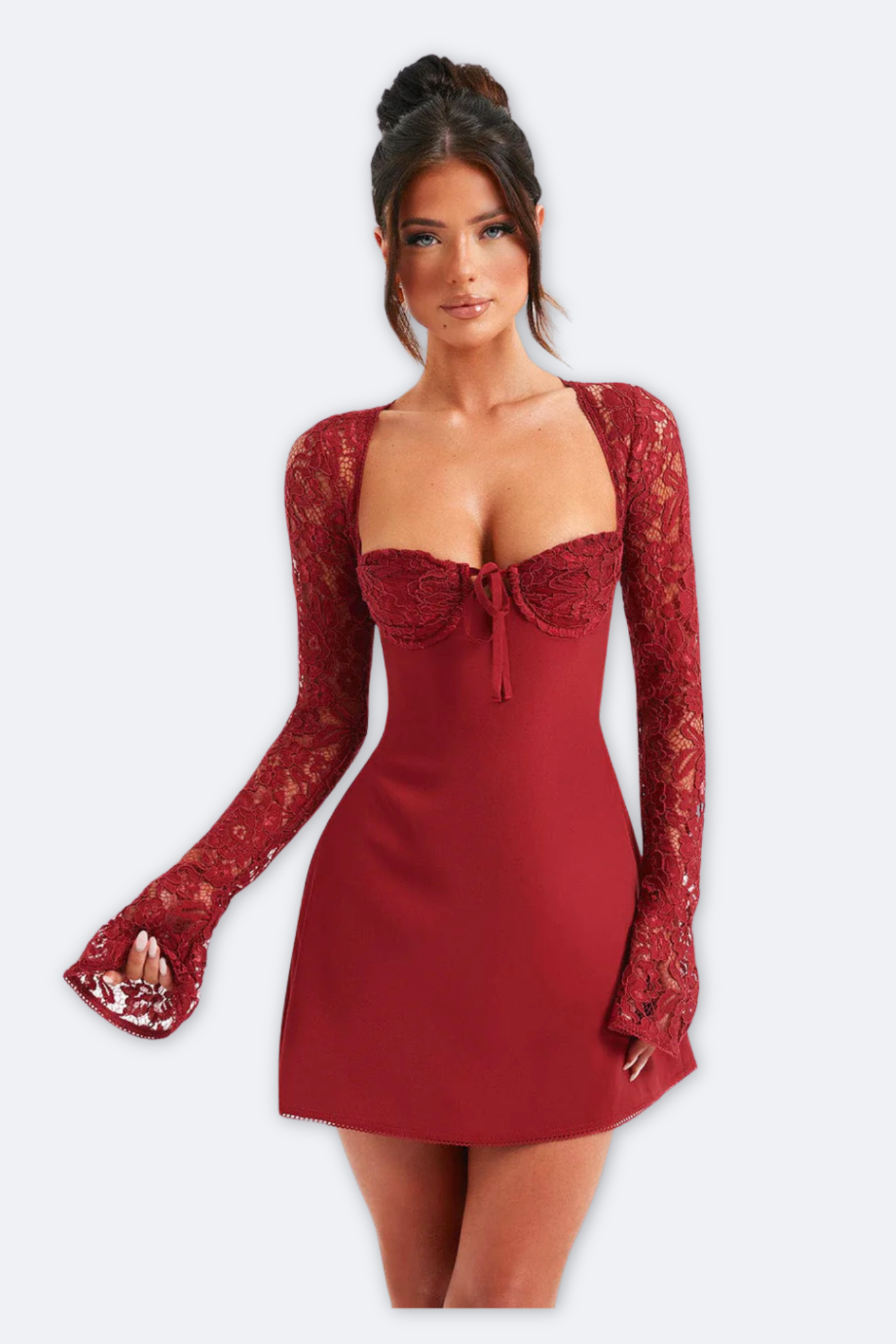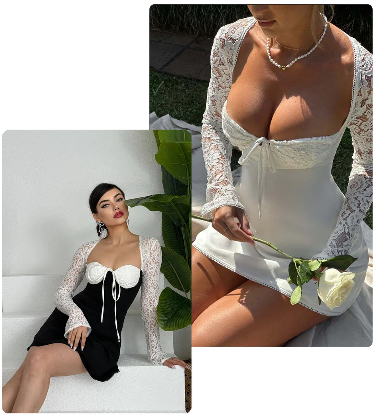 Falling for soft, feminine charm? Meet Jacinta, your new go-to mini dress crafted from luxe chiffon. With its dreamy lace sleeves, structured underwired bust, and romantic tie details, this milkmaid-inspired beauty is made to steal the spotlight. Whether you're off to brunch in knee-high boots or dressing up for date night in sky-high heels, Jacinta delivers effortless elegance all season long.